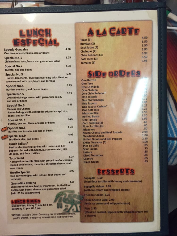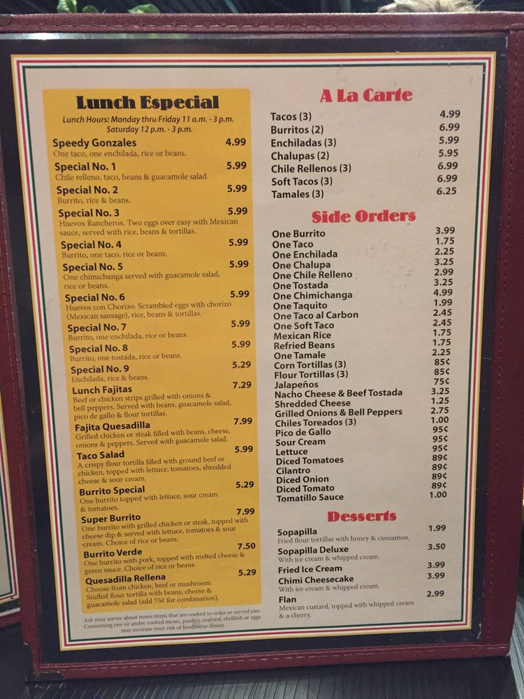 1 Burrito, 1 Chile Relleno and 1 Tostada