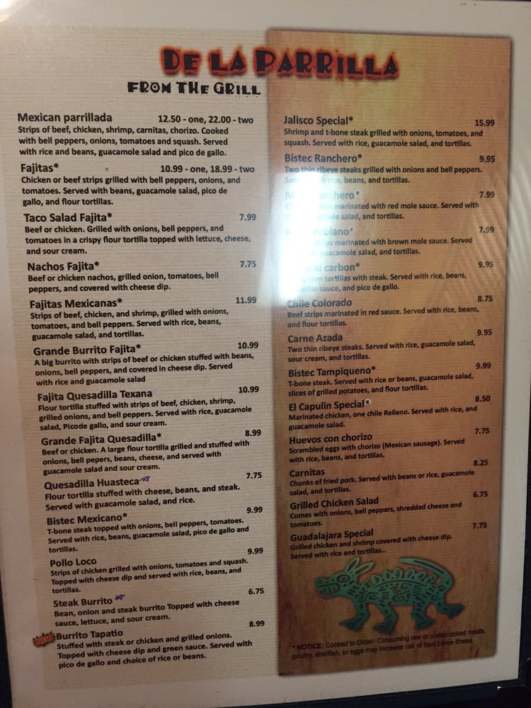 Grilled chicken or steak filled with beans, cheese, oninos and peppers. Served with guacamole salad.